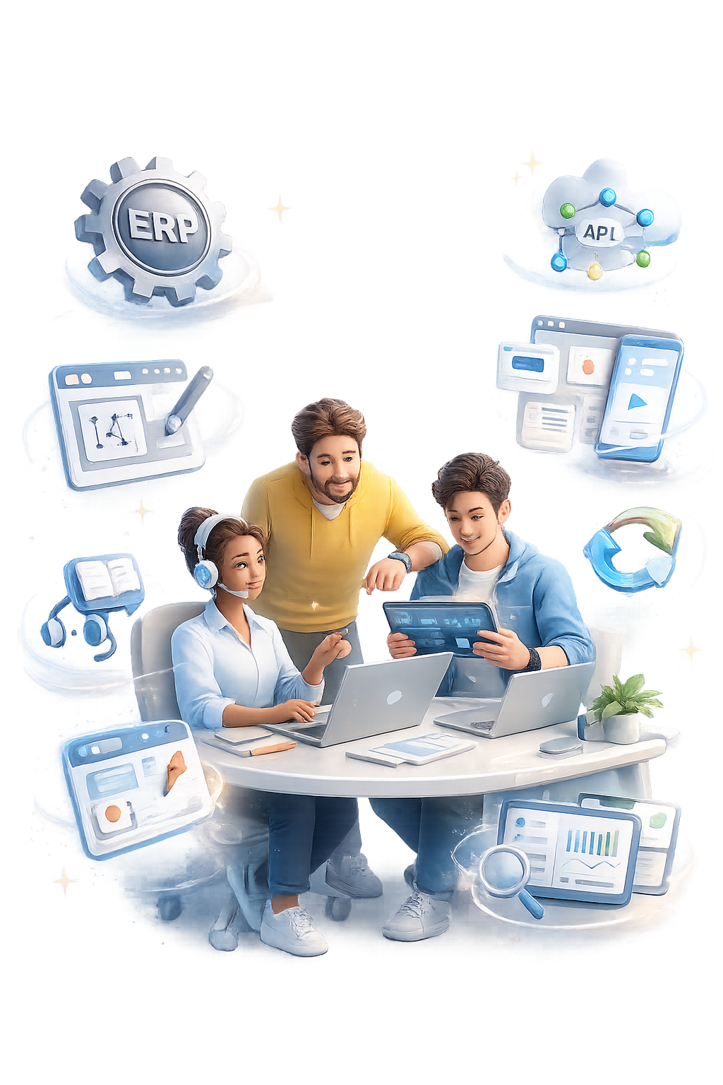 At Softsync, we build intelligent technology solutions that streamline operations, automate workflows, and empower businesses to scale faster. From ERP systems and AI-powered automation to modern web platforms and seamless integrations, our services help organizations transform ideas into powerful digital ecosystems.